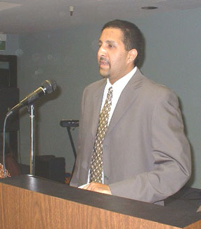 AMV Woodland Chapter Opens WOODLAND, CA: The American Muslim Voice Northern California held an introduction dinner on April 10, 2004 at the Woodland Library to introduce the AMV in northern California. The colorful event, arranged by Khalid Saeed, the AMV Director of Northern California, was attended by about 100 people. The most important feature of the program was introduction of the presidents of the AMV in Chico and Woodland. Here are glimpse from the three-hour colorful event.